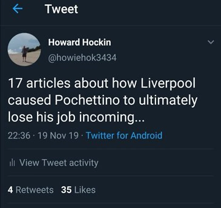 Я искренне считаю, что нет ничего хуже, чем слепой фанатик, который не видит объективной реальности и живет в розовых очках. К сожалению, успех настолько вскружил голову большинству болельщиков Ливерпуля, что они действительно считают свою команду одной из сильнейших в истории ФУТБОЛА (ха-ха). Также, судя по всему, считает и главный тренер.
