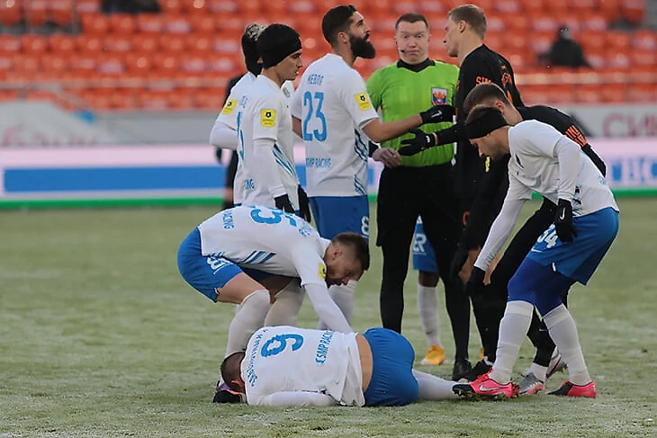 Уже на 45-й секунде Игорь Калинин воткнулся в ногу Антону Заболотному – арбитр Станислав Васильев был рядом и моментально показал игроку «Урала» желтую. Но Заболотный не вставал – момент начали рассматривать по ВАР на предмет прямой красной. И даже подозвали главного.