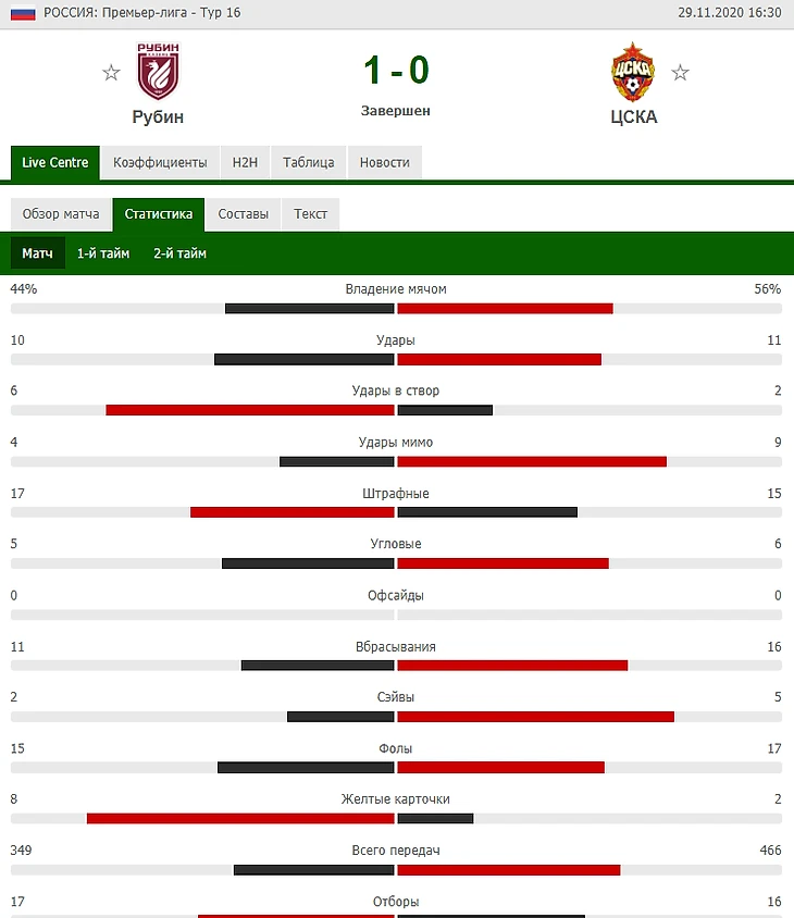 Рубин - ЦСКА: Москвичи заслуженно уступают