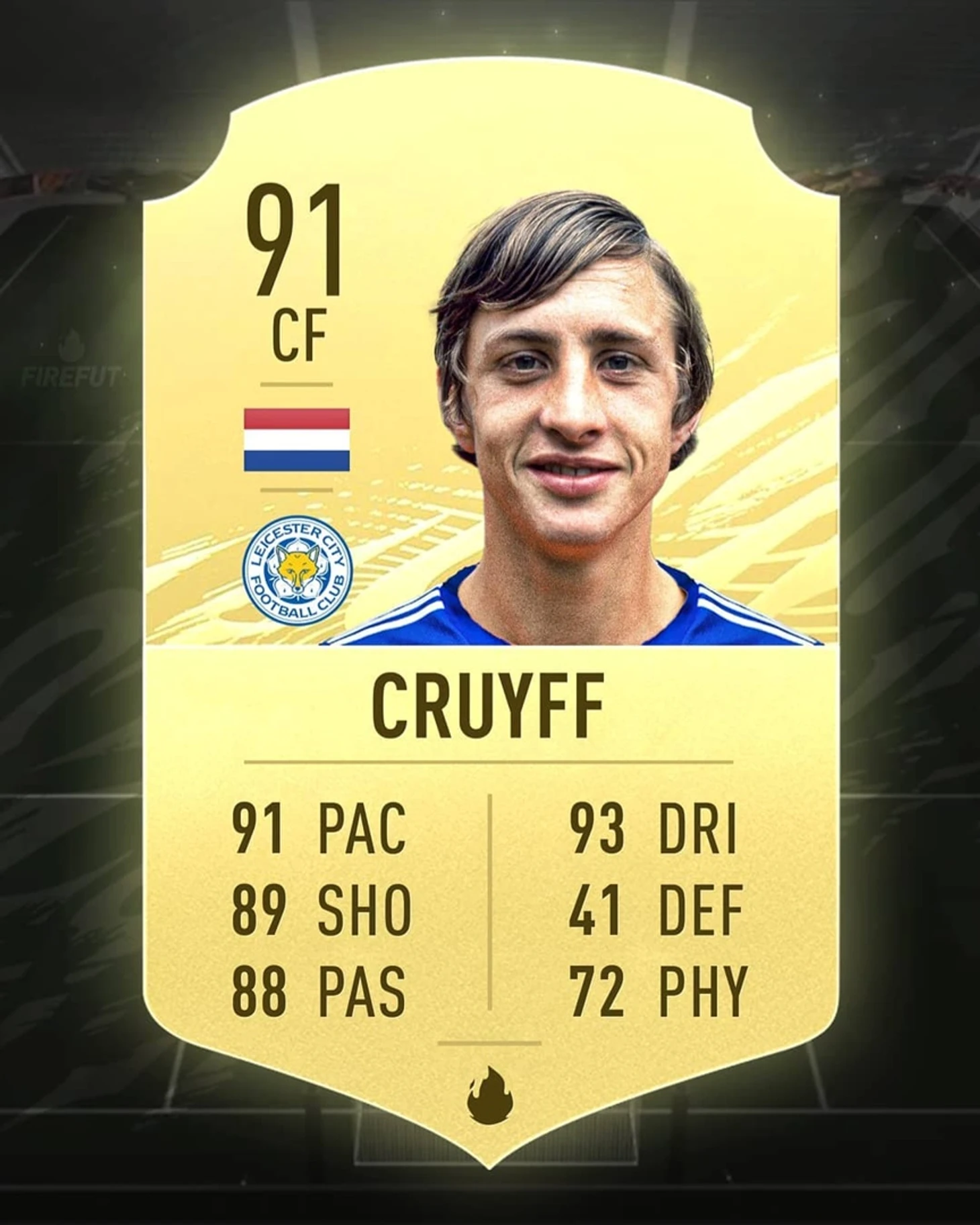 Фанаты «Лестера» немного пофантазировали, как могла бы выглядеть карточка Кройффа в FIFA. А ведь ему идет синяя форма!