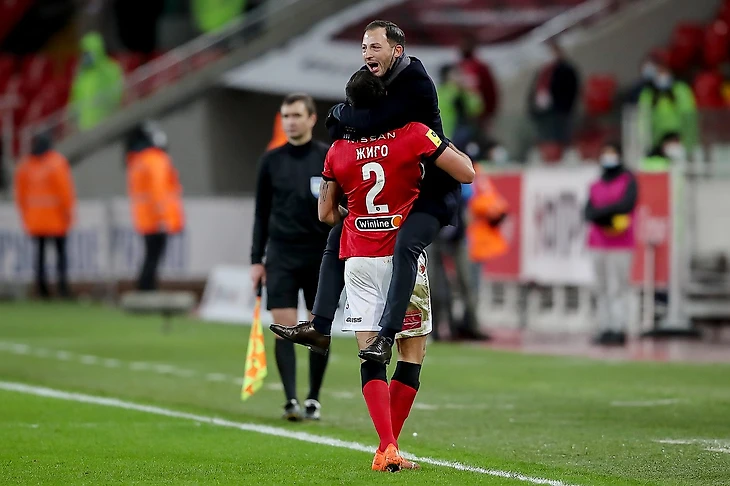 Матч Спартак начал очень бодро. На поле я наконец-то увидел Кокорина, он вчера неплохо двигал мяч и действовал в созидании. Также вчера Спартак лишился Айртона и на его место поставили Виктора Мозеса. Это ещё один из лучших игроков матча. Виктор имел несколько моментов с хорошей позиции, но не реализовал их. Также не могу не сказать про Зобнина. Через его фланг в первом тайме Спартак продвигал большинство своих атак. Если говорить о нападении, то и у Ларсона, и у Понсе сейчас идёт спад в игровой форме. Вчера они и не испортили игру, но также и не отличились в ней. Первый тайм Спартак очень много атаковал, и одна из атак привела к голу с пенальти. Кокорин забил свой второй мяч за Спартак. Также Спартак мог и пропустить вчера. После того, как Спартак забил гол, они пошли большими силами вперёд, оставляя позади пустые зоны. После того, как Спартак терял мяч, сразу же шла контр атака, и игроки Ротора через пас выходили иногда два в два, но тут браво Самуэлю Жиго. Он много подчищал и за Джикией, и за Масловым.