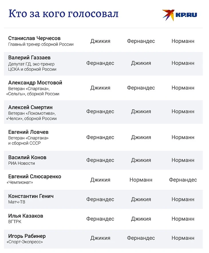 В первом этапе голосования, проходившем на сайте издания, тройку финалистов определили болельщики. Марио Фернандес (ЦСКА) вышел в финал с Гкоргипм Джикией ("Спартак") и Матиасом Норманном ("Ростов").