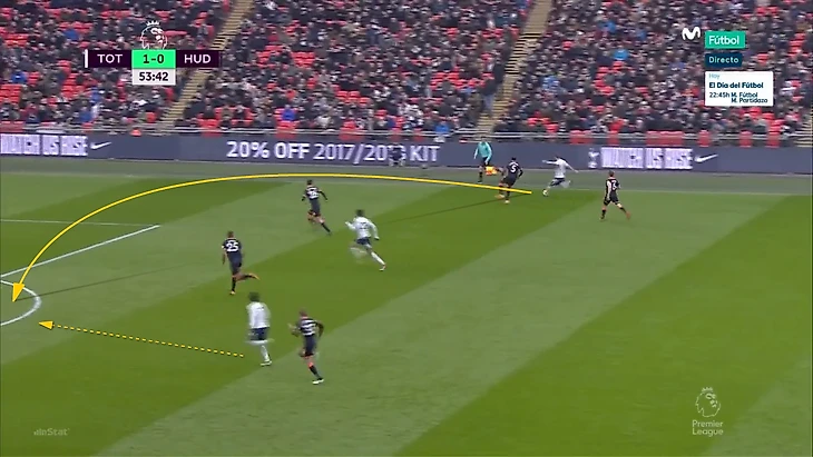 В обоих случаях защитники могли сыграть лучше. Но ситуацию, при которой им нужно разрываться, создает именно движение Ндомбеле, Кейна и Сона. Соперники знают, насколько Кейн может быть опасен с мячом, поэтому выдвигаются к нему. Но, даже не касаясь мяча, Харри создает остроту – за счет открываний и поддержки Ндомбеле.