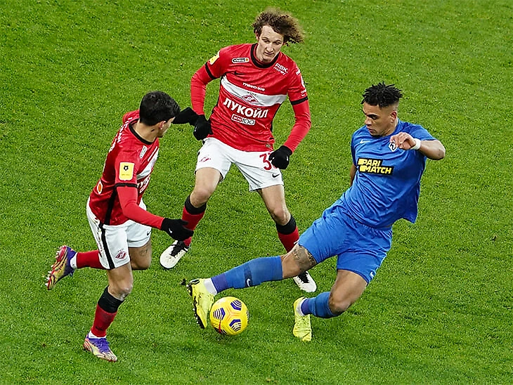 • Полтора тайма аутсайдер сражался: на 65-й, сразу после второго гола «Спартака», форвард Онугха (он в аренде и «Краснодара» и наверняка страдает меньше многих) отыграл один мяч после классного розыгрыша. Спартаковцы были в напряжении аж до 83-й, когда Ларссон забил третий, а четвертый и пятый влетели следом.