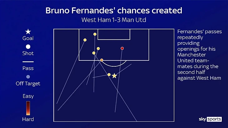 Игра перевернулась во втором тайме, когда на поле вышли сперва Бруну Фернандеш и Маркус Рэшфорд, а затем вместо Антони Марсьяля появился Хуан Мата. Фернандеш просто разорвал «хаммерс», создав 8 моментов с игры для партнеров – лучший результат в нынешнем сезоне Премьер-лиги. И это всего за 45 минут на поле.