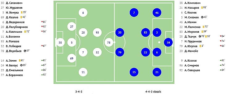 Поинтереснее смотрелись красноярцы во второй половине встречи, однако так и не сумели отличиться. «Крылья» же играли уже в режиме экономии. Впрочем, всё равно смогли один раз забить, воспользовавшись ошибкой соперника и увеличив преимущество до четырёхкратного.