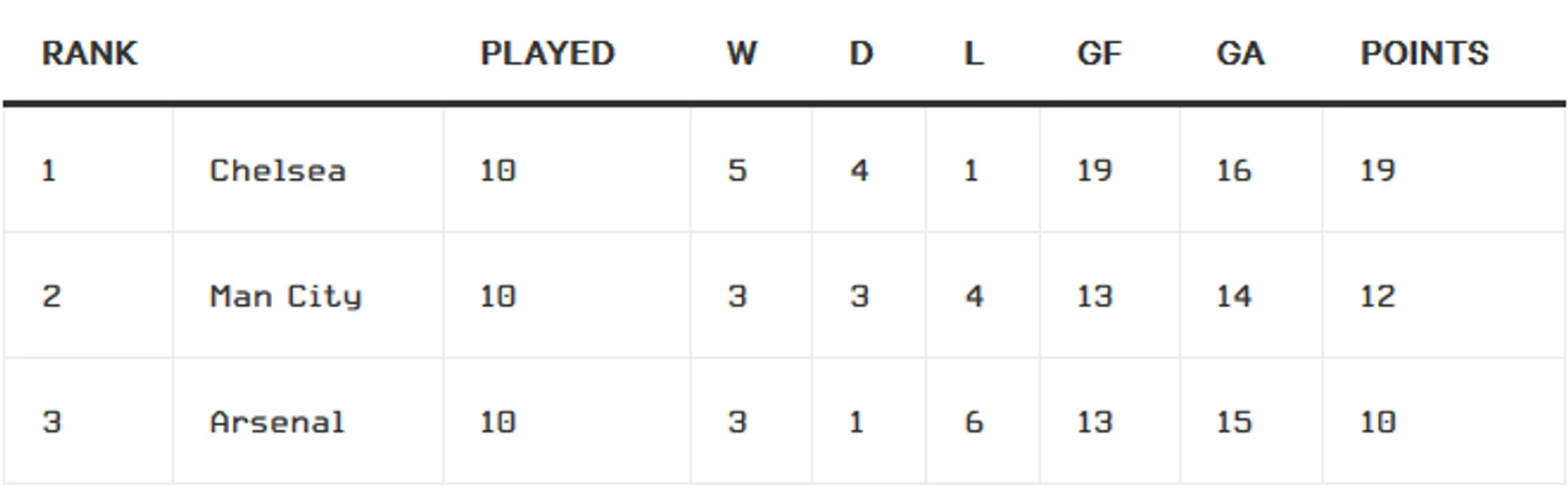 Исходы всех трёх поединков против «МЮ», «Челси» и «Сити» были определены после 80-й минуты, когда соперник забивал решающий гол. В параллельной вселенной, где футбольный матч длится 80 минут, «Арсенал» сейчас был бы на первом месте, опережая «Юнайтед» по разнице мячей. Но в нашем мире «пушкари» довольствуются пока лишь третьей строчкой.