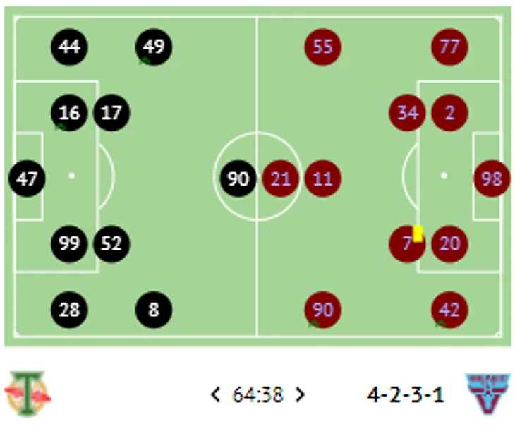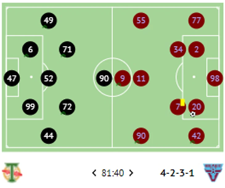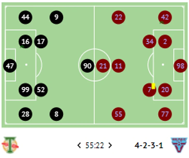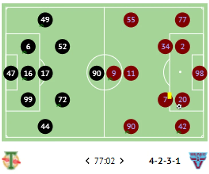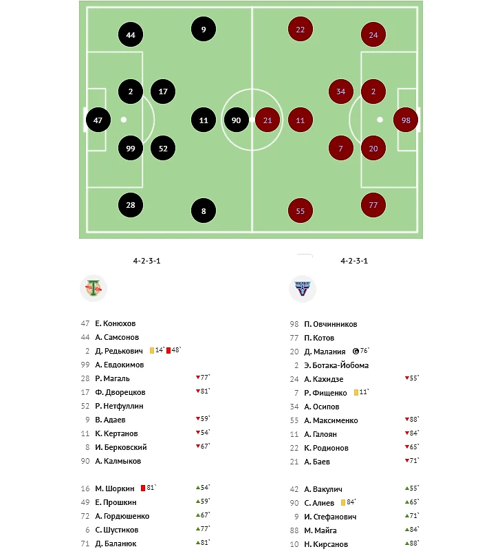 «Торпедо» благодаря замене атакующего игрока на оборонительного, по сути, перешло на более атакующую расстановку – с 4-4-1 на 3–5-1.