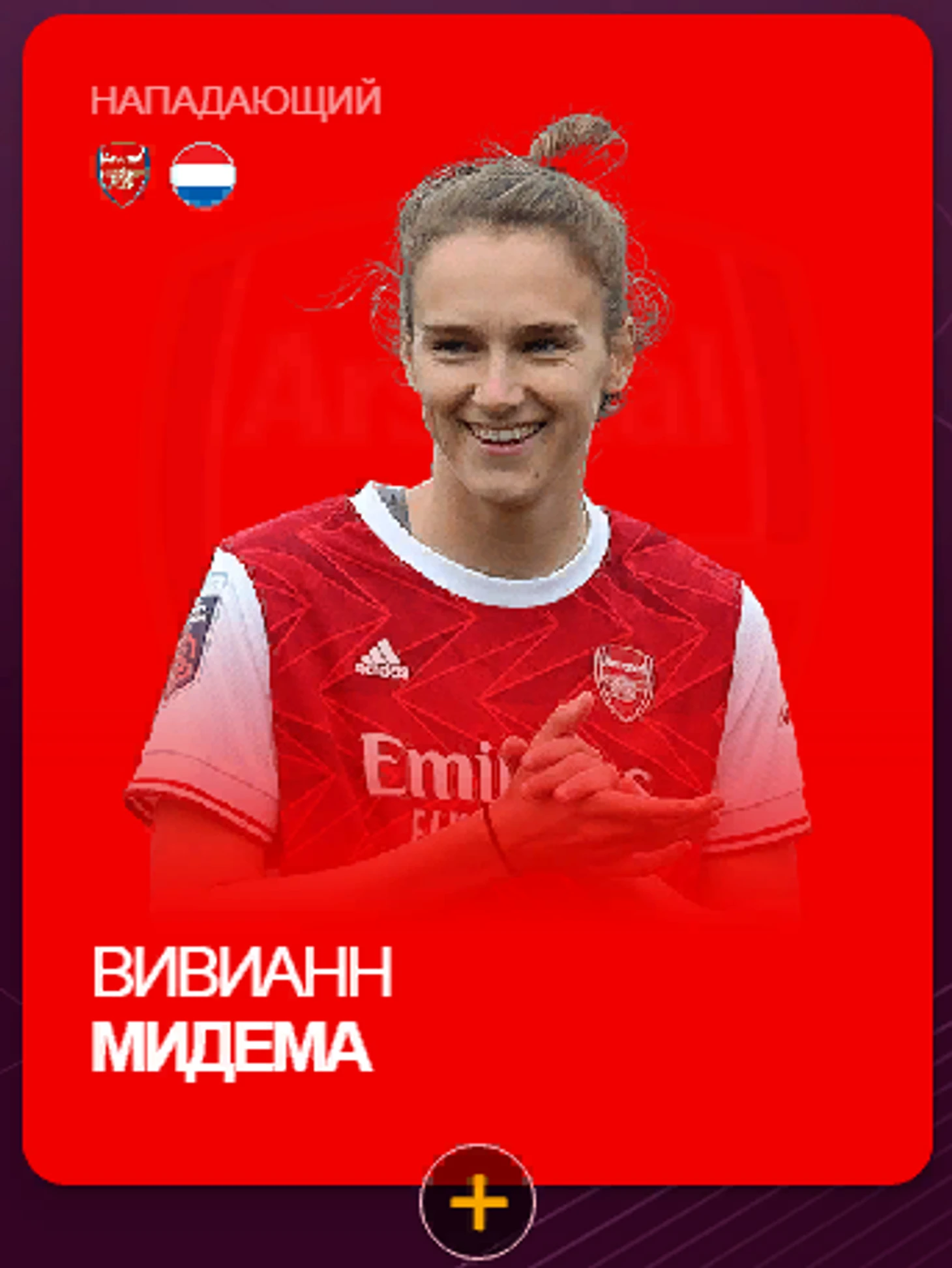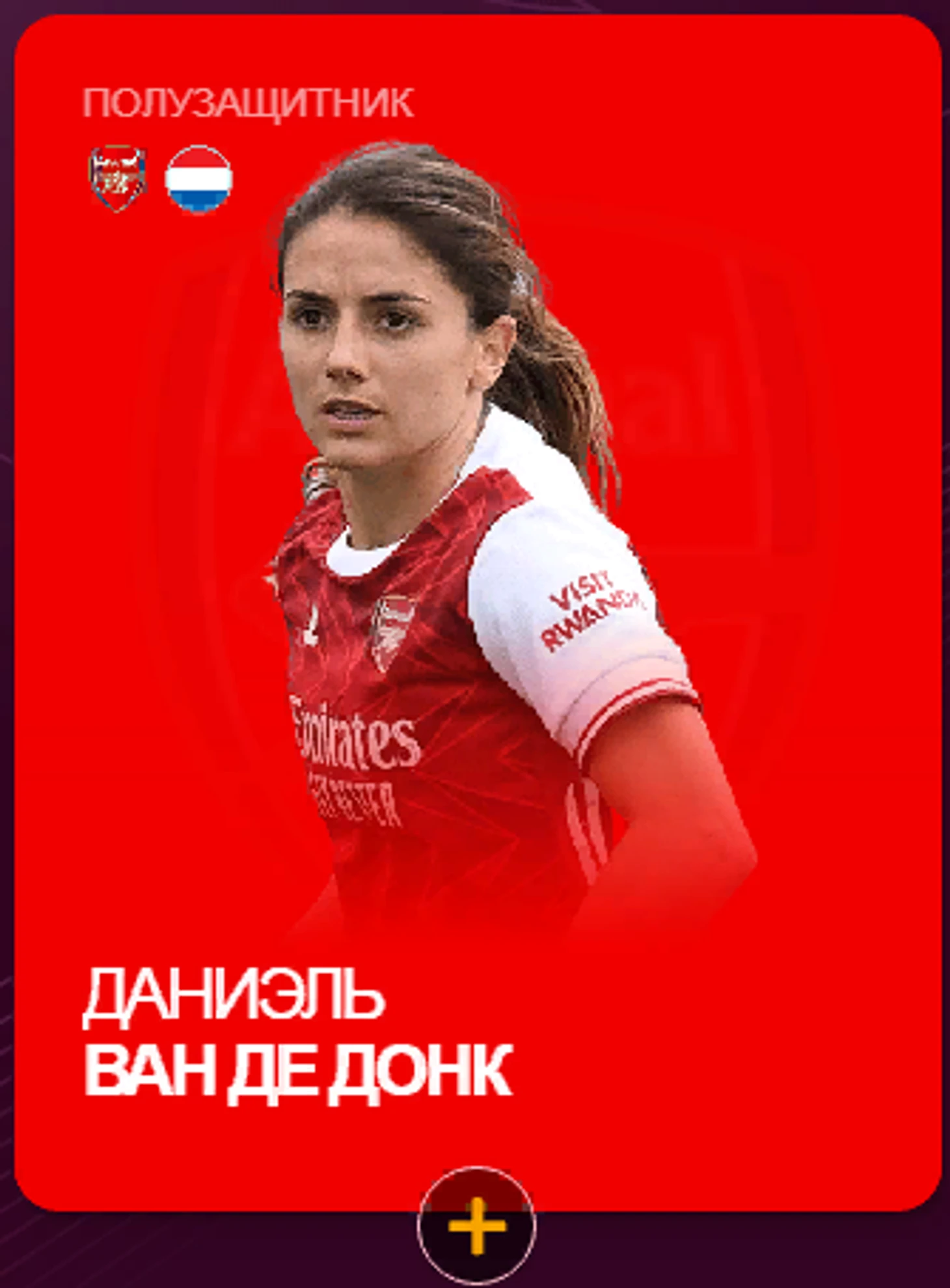 Одаренный полузащитник-универсал, блистала в “Арсенале” и сборной Нидерландов. Одинаково эффективно может сыграть опорного полузащитника и нападающего. Ключевой игрок сборной Нидерландов, помогла чемпионкам Европы выйти на ЕВРО-2022.