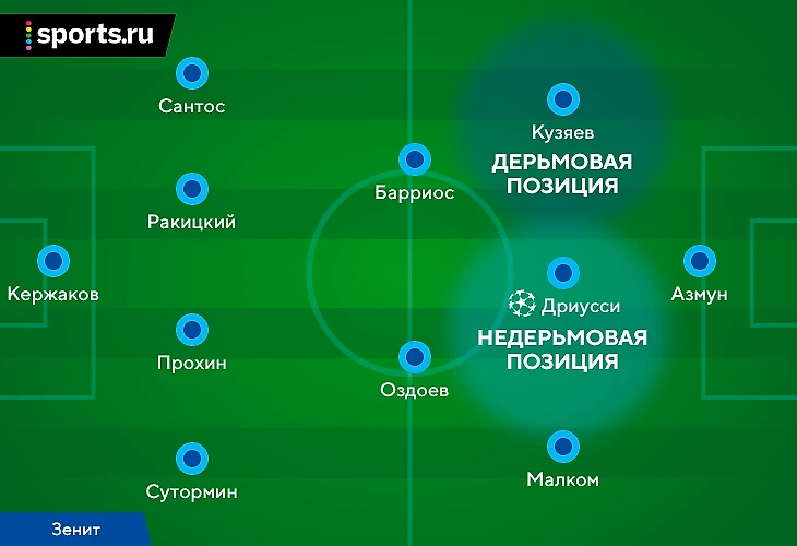 А Семак как-то в деталях объяснял, почему Дриусси выходит слева: «У Себы есть качество, когда он уходит в центр и делает обостряющий пас. С этой точки он отдал уже практически четыре голевые передачи, поэтому мы решили его использовать слева. Такая мысль появилась, потому что у нас не было больших ресурсов для усиления игры на фланге. Из-за этого пришлось думать о смене позиций некоторых игроков – нужно было разнообразить атакующие действия».