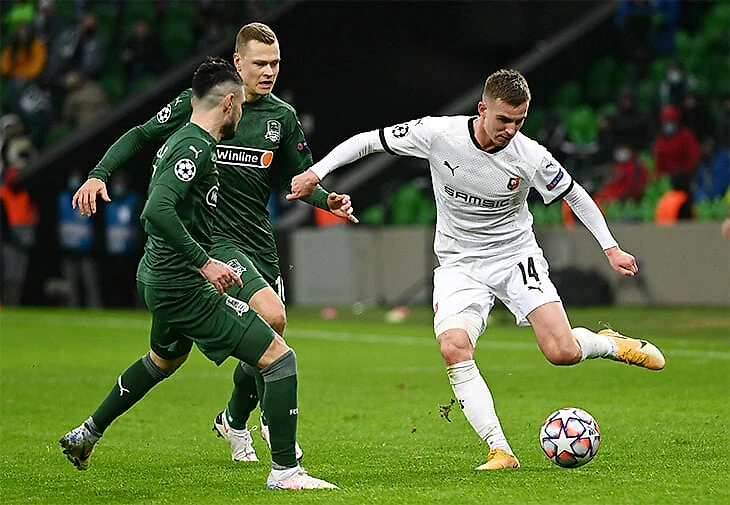 В обоих матчах с «Ренном» «Краснодар» пытался воспользоваться высокой линией обороны французов. В первой игре это не удалось (хотя Смольников, который снова вышел в полузащите как раз для вбеганий из глубины, несколько раз классно открывался), а во второй «Краснодар» так забил решающий гол всего группового этапа (заброс Мартыновича на Берга – совсем не простой вынос, а продуманная передача в свободную зону).