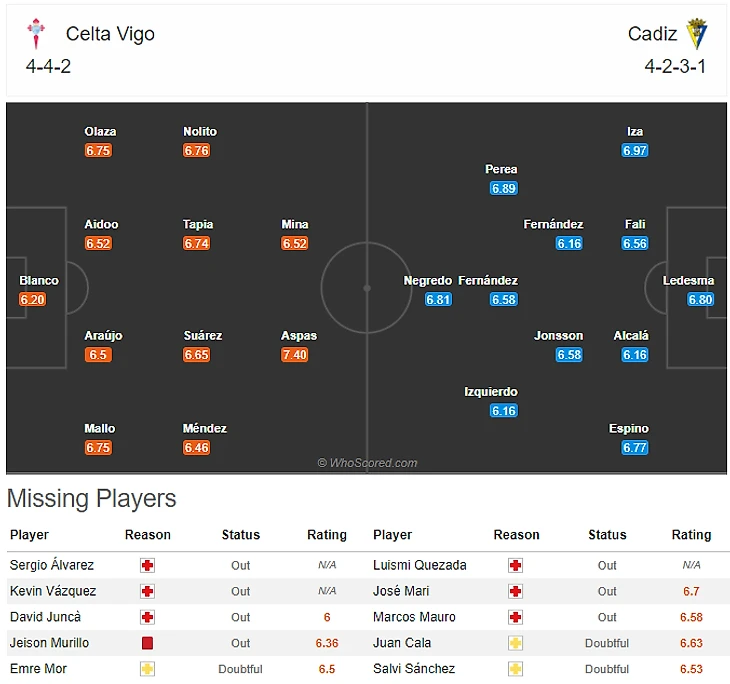 Ну а у гостей из Кадиса проблемы более прозаические. Внезапно в зоне риска оказался центр обороны подводников – единственный полностью здоровый юнит на этой позиции – Фали(5). Остальные имеют повреждения различной тяжести. Например Педро Алькале(5) в прошлом туре поломали нос и теперь оборонца будет легко узнать на телекартинке по высокотехнологичной маске на лице.