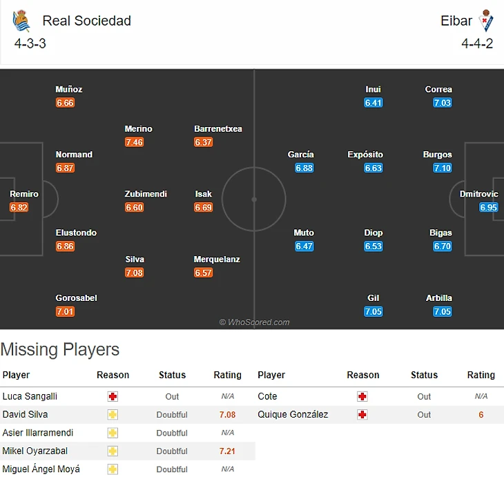 Хотя Лига Европы это не только плюсы. Из-за жесткого графика Сосьедад вероятнее всего не сможет выставить на поле в ближайшем туре ни Ойарсабаля(8,5) ни Давида Сильвы(8).
