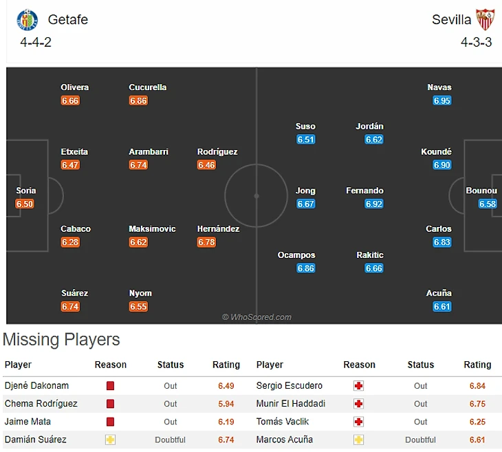 Впрочем у Севильи тоже не все гладко с обороной. Левый фланг провисает без травмированного Эскудеро(6), а на правом под вопросом появление в ближайшем матче Хесуса Наваса(6,5).