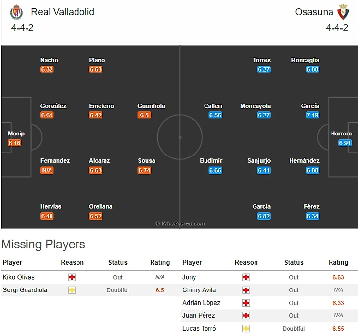 На что обратить внимание: На Кико Оливаса(5,5). Без своего лидера вальядолидская оборона в этом сезоне утратила прежнюю монолитность и непробиваемость. Поэтому ускорение темпов выздоровления защитника – это безусловно хорошая новость. На прошлой неделе Кике перенес операцию по удалению спаек и если все пойдет как надо - уже в январе Оливас сможет вернуться на поле.