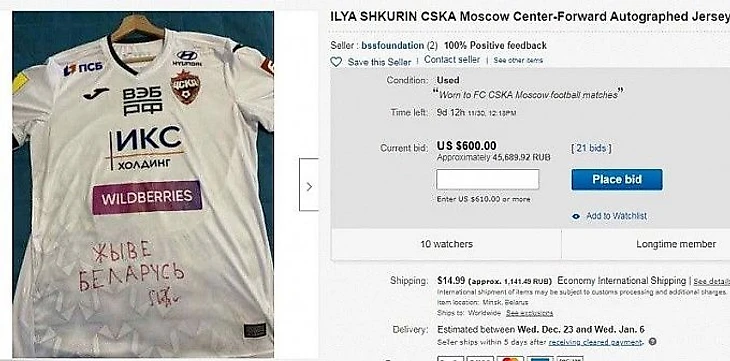 Футболка форварда ЦСКА Шкурина продана на аукционе