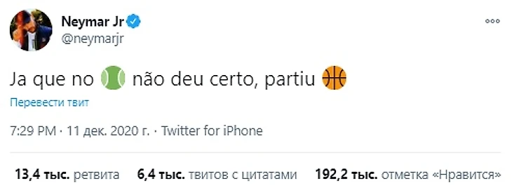 Бразильское издание Globo Esporte считает, что эмодзи с теннисным мячом попало в твит по ошибке – Неймар просто перепутал. Но и на этом нападающий «ПСЖ» не остановился.