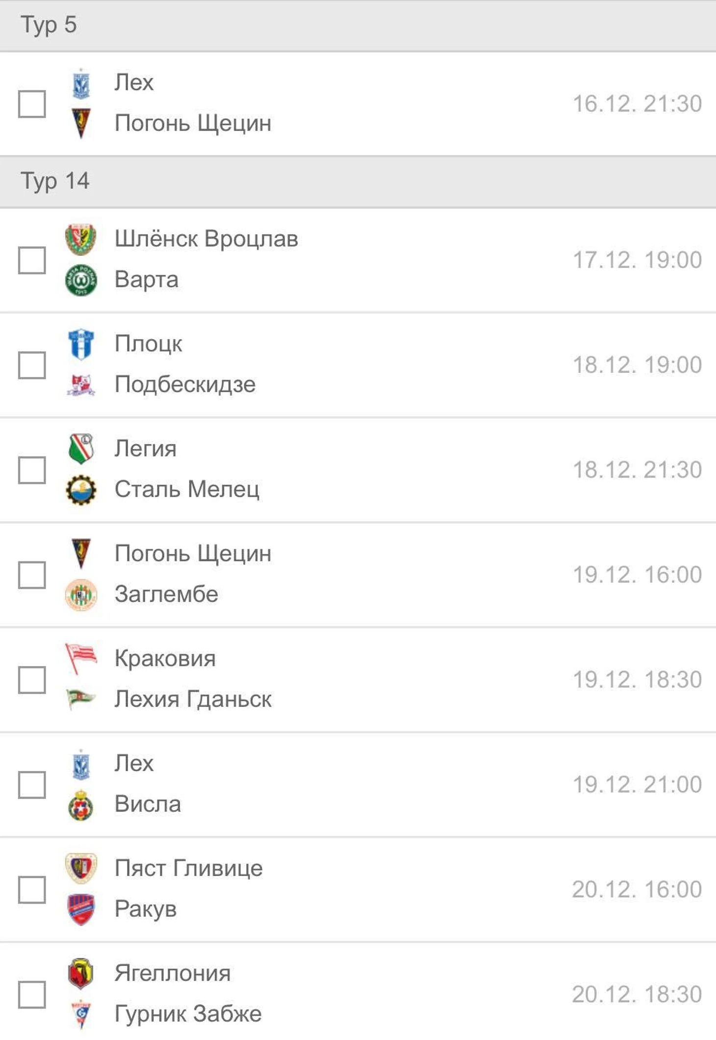 Расписание 14 тура (включительно с перенесенным поединком "Леха" и "Погони"):
