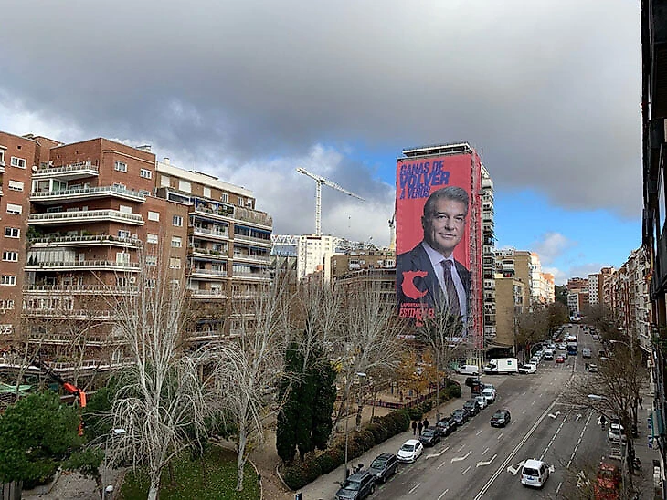 Лапорта шумит перед выборами: повесил огромный баннер рядом с «Сантьяго Бернабеу» и пообещал сохранить Месси