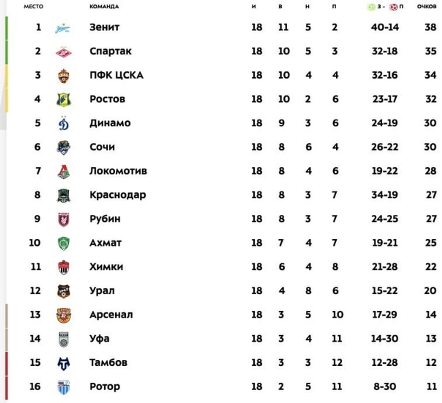 Для начала давайте, узнаем турнирное положение этих команд до встречи. "Зенит" на первом месте с 38-ю очками (11 побед, 2 ничьих и 2 поражения). "Спартак" же на втором месте с 35-ю очками (10 побед, 5 ничьих и 3 поражения). В случае победы столичной команды, эти команды бы делили первую строчку.