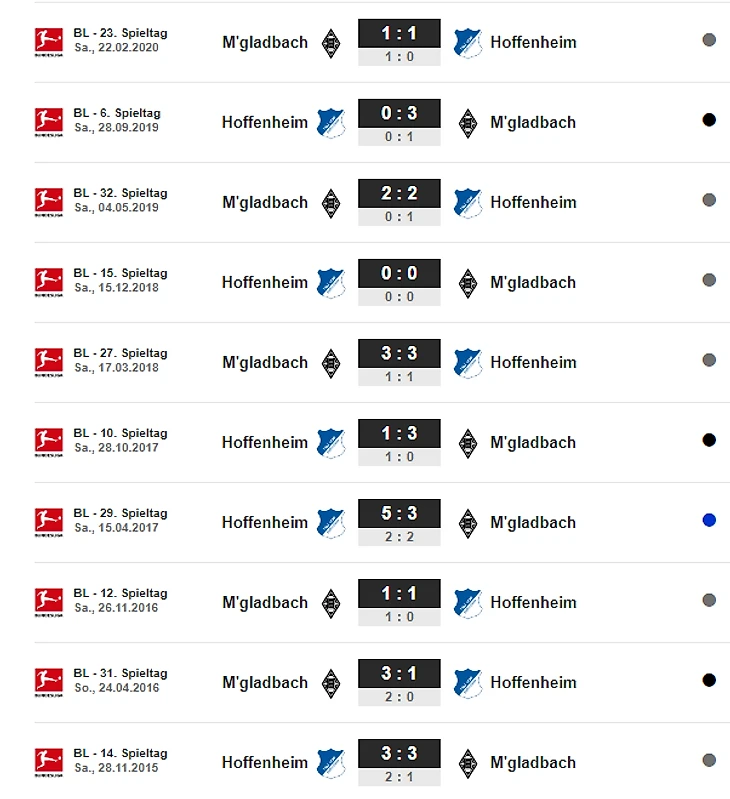 Маттиас Гинтер не проиграл ни один из своих 13 матчей Бундеслиги против «Хоффенхайма» (пять побед, восемь ничьих) и не забил столько много голов (4) в своей карьере ни одному другу клуба, чем «Хоффенхайму» (за пять матчей, все в цветах «Боруссии М»).