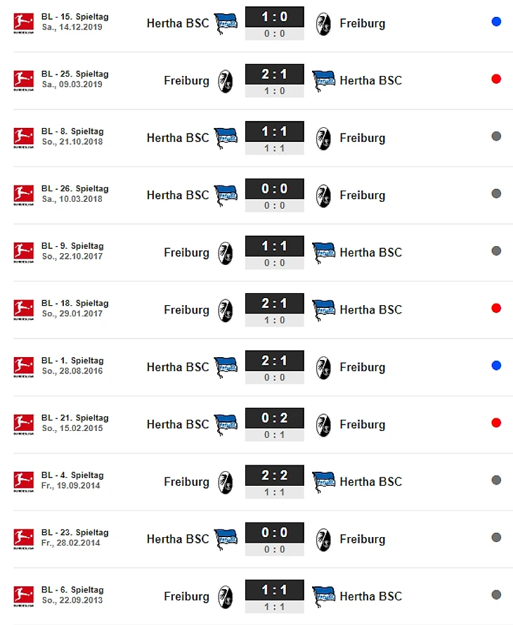 Дома «Фрайбург» непобедим во встречах с «Гертой» уже в течение семи домашних матчей в Бундеслиге (три победы, четыре ничьи). Последнее домашнее поражение от берлинцев было нанесено почти одиннадцать лет назад (21.02.2010 - 0:3, тогда забивали Адриан Рамос и дважды Сисеро).