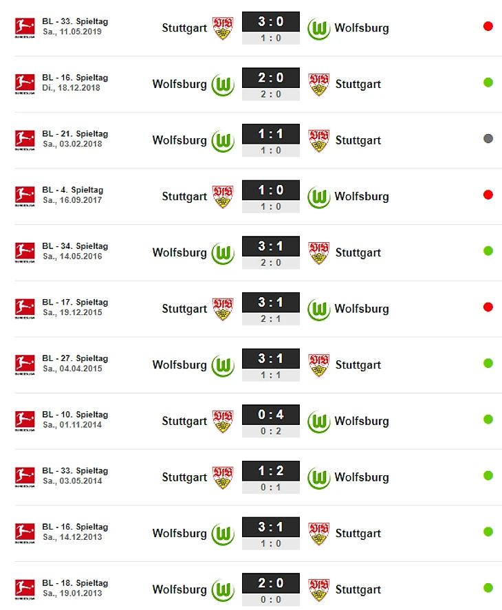 Вамангитука забил последние шесть из своих семи голов в сезоне в выездных матчах – последний раз в Бремене и Дортмунде он дважды забивал за «Штуттгарт». Нападающий «Вольфсбурга» Вегхорст каждый раз поражал ворота соперника в последних четырех домашних матчах (в общей сложности шесть раз, а в последний раз два дубля).