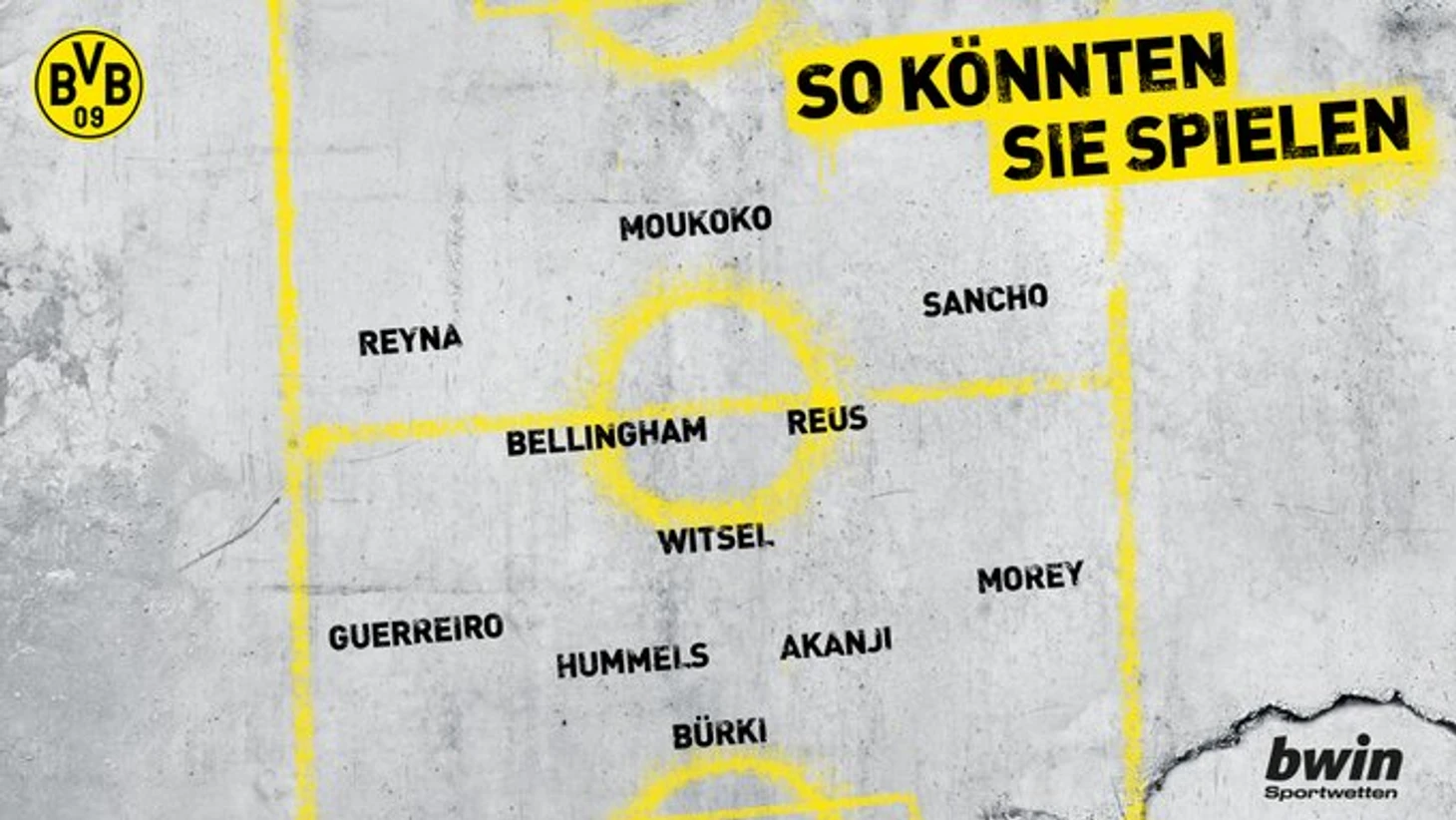 «Боруссия»: Роман Бюрки, Матеу Морей, Мануэль Аканджи, Матс Хуммельс, Рафаэль Геррейро, Аксель Витсель, Джуд Беллингем, Марко Ройс, Джейдон Санчо, Джованни Рейна, Юссуфа Мукоко.