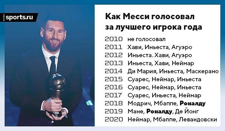 • В 2010-м Месси не голосовал, потому что вся сборная Аргентины, включая тренера, не подала свои бюллетени.