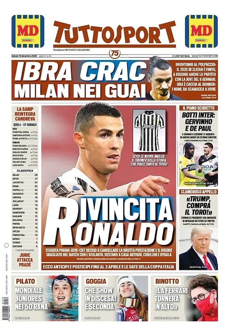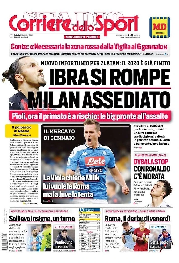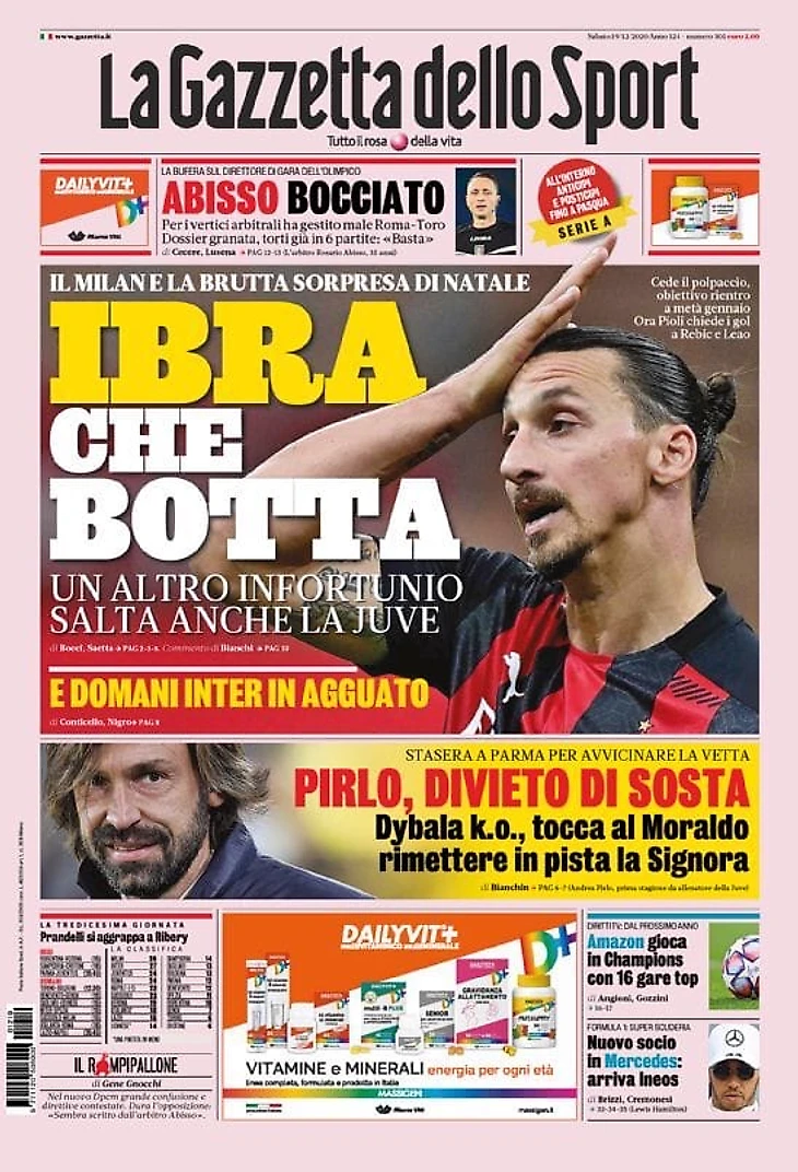 Ибра, какой удар. Заголовки Gazzetta, TuttoSport и Corriere за 19 декабря