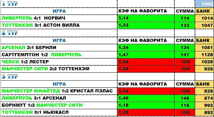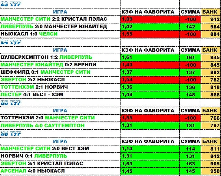 Начнем разбор сезона 2019/20. И для начала условимся, что фавориты для нас это те коллективы, на которые, букмекеры дают коэффициенты от 1,03 до 1, 70. Также сразу стоит обговорить нашу финансовую политику. Мы будем играть от банка в 1000 рублей, делая ставки по 100 на событие, без экспрессов, исключительно одинарами, погнали!!!