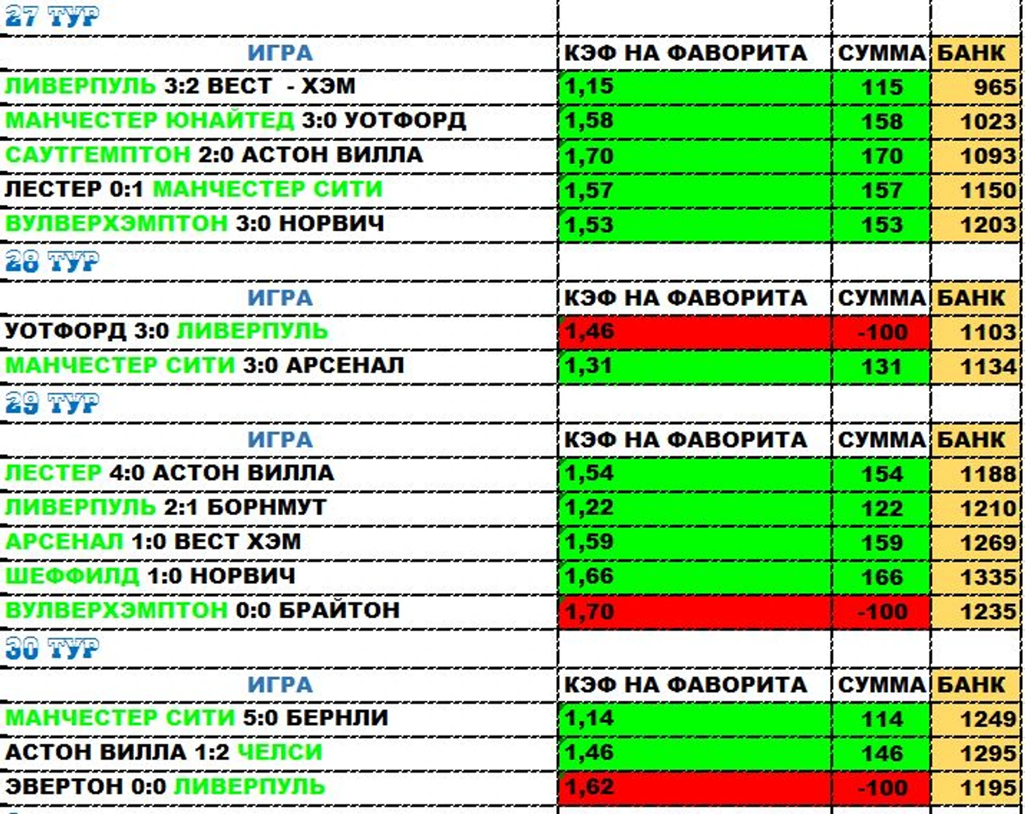 Нам же, искушенным любителям делать ставки, интересно не только чемпионство красных, но и то, сможем ли мы заработать, ставя только на фаворитов в премьер лиги. Конечно же один сезон не будет похож на другой, особенно нынешний сезон, где лидеры достаточно часто теряют очки, но попробовать воспроизвести общую картину с помощью уже минувших сезонов, мы можем, пора начинать!