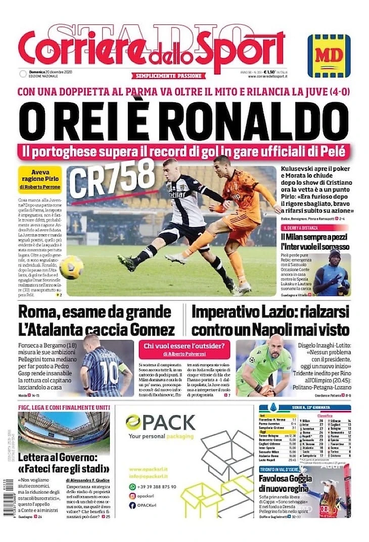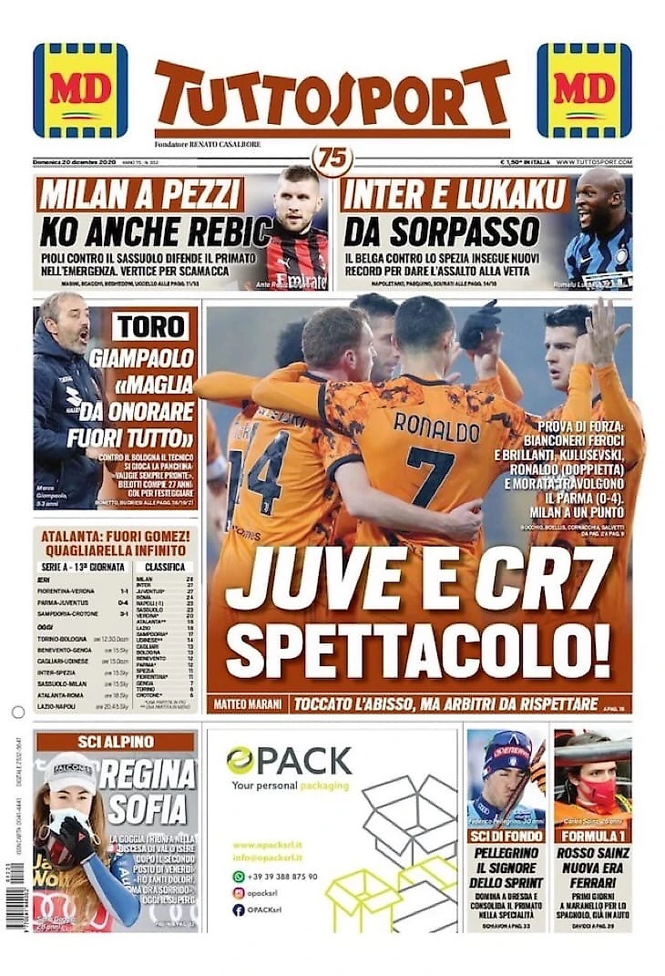 Король – это Роналду. Заголовки Gazzetta, TuttoSport и Corriere за 20 декабря