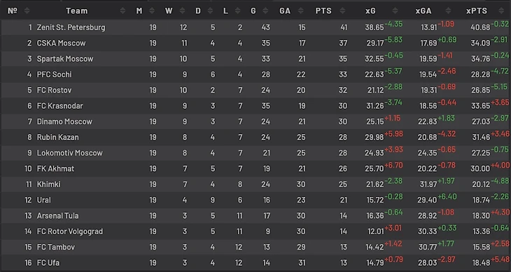 Вторая часть итогов первого круга РПЛ базируется на продвинутой статистике и вот какие выводы она дает.