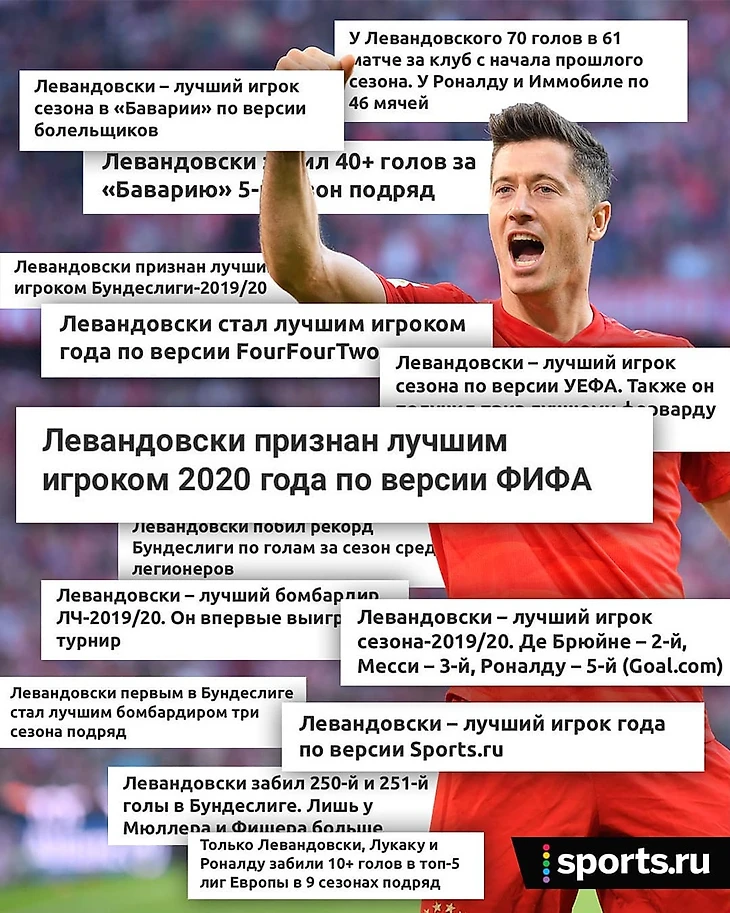 Пускай France Football горят в аду( если кто не помнит -церемонию награждения "Золотой Мяч" отменили в этом году и-за COVID 19).Если бы не отмена этой награды, то Левандовски выиграл бы все что можно в этом году. И это было полностью заслуженно.Тут тоже расписывать долго не стоит. Лева великолепен. С таких людей нужно брать пример.
