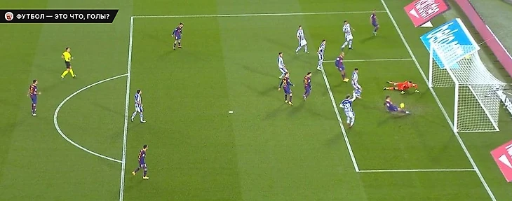 В одной из таких атак Педри очень опасно завершал головой. Сосьедад к таким ситуация пытался адаптироваться походу матча, например вингер Порту опускался в центральную зону за Месси, оставляя открытым фланг. Сохраняя мяч под давлением, Лео снова имеет вариант для продолжения - оголенный правый фланг.