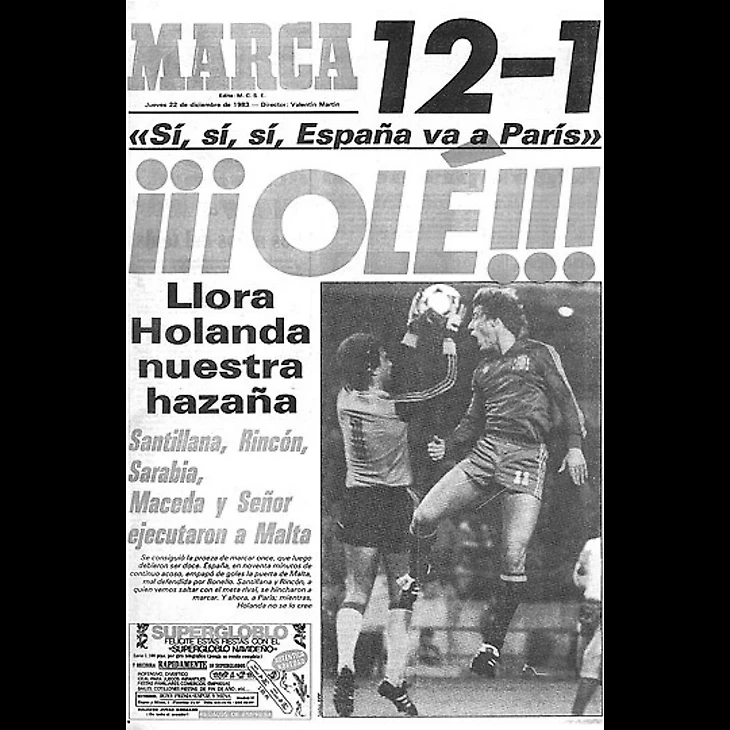 21 декабря 1983 года сборная Испании обыграла сборную Мальты в заключительном матче отборочного турнира Чемпионата Европы 1984 года. В самом событии нет ничего удивительного, учитывая разницу в уровне двух команд, если бы не счёт — 1:12. Именно с разницей в 11 и более мячей пиренейцам необходимо было обыграть островитян, чтобы занять первое место в группе и оставить за бортом Евро сборную Нидерландов.