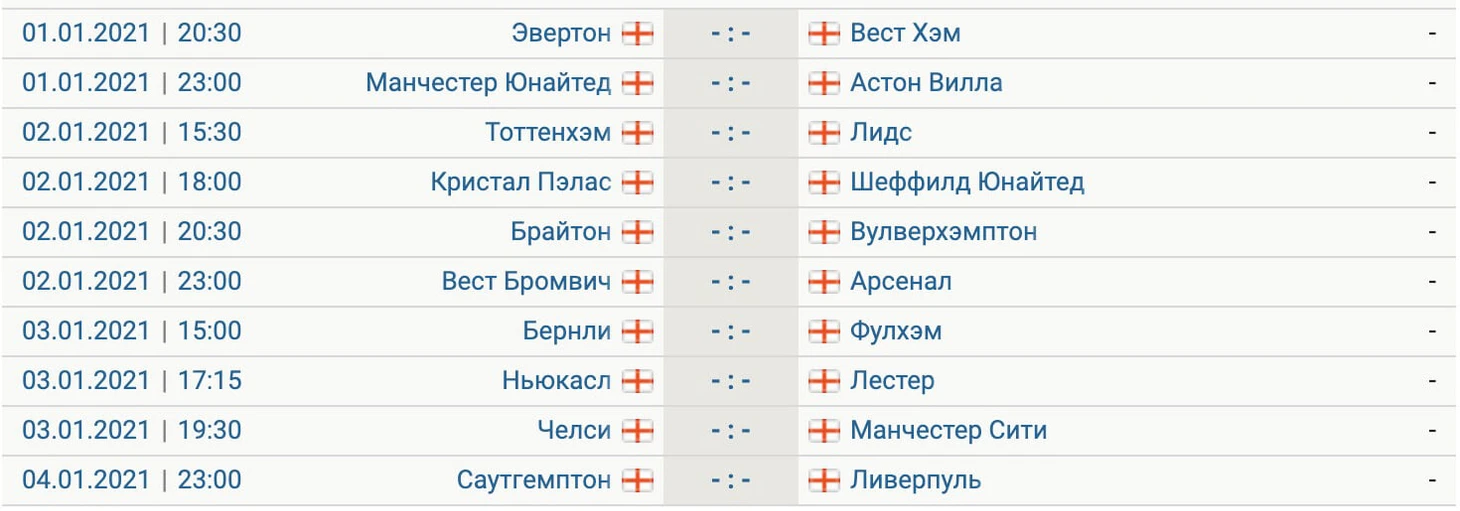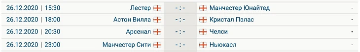 Первый мини-турнир пройдет 26 декабря, в боксинг дэй – там будет топовый матч «Арсенал» – «Челси», встреча «Лестера» с «Ман Юнайтед» и еще 2 игры. Во втором турнире будет 6 матчей, в третьем – все 10 матчей 17-го тура. Вот расписание: