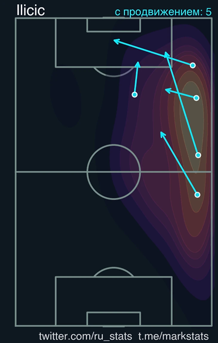 У Иличича: 0,28 xT, три передачи в штрафную с игры (лучший результат), две передачи под удар, семь касаний в штрафной, два удара из пределов штрафной — делит первое место с кем-то ещё