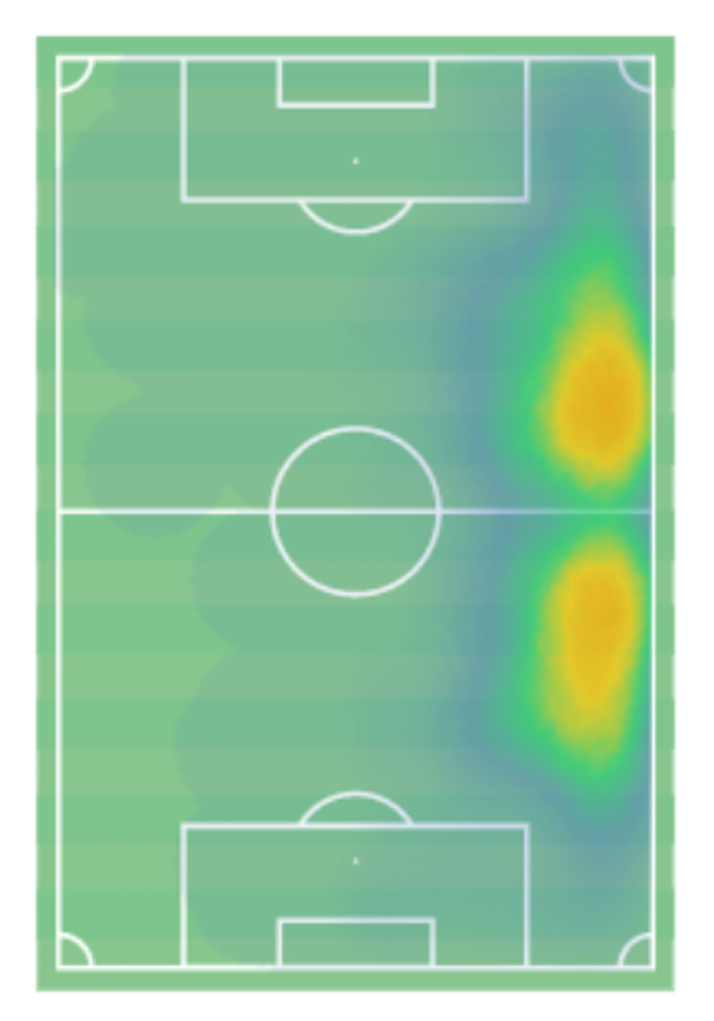 В 2020 году Бронз сделала больше голевых передач, чем любой другой правый защитник. Её значительный вклад в атакующую игру подтверждает и тепловая карта этого сезона. Англичанка покрывает весь правый фланг, одинаково полезно действуя с мячом и без мяча: