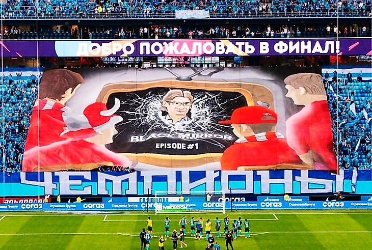16. В кубковом полуфинале со «Спартаком» «Зенит» победил (2:1) – жарко было и на поле (несколько спорных решений Сергея Иванова, которые потом признали верными), и на трибунах. Баннер фанатов «Зенита» – один из самых громких в 2020-м.