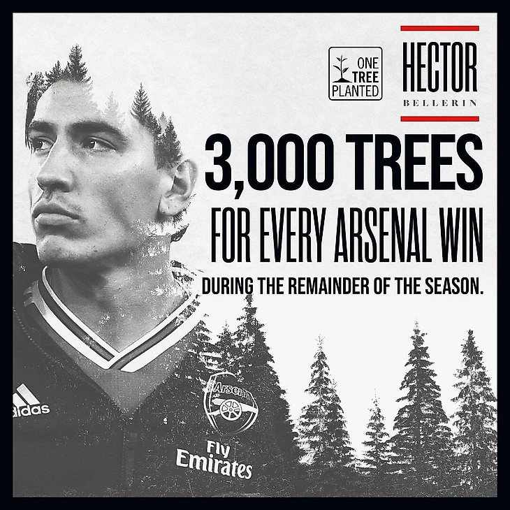 Перед рестартом АПЛ Бельерин ворвался в соцсети с красивой акцией: пообещал, что за каждую победу «Арсенала» с июня и до конца сезона-2019/20 будет жертвовать деньги на посадку 3 тысяч деревьев (1 дерево = 1 доллар).