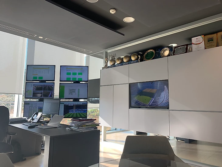 На базе в Вальдебебасе есть специальный кабинет, в котором есть все необходимое, чтобы следить за полями на базе и за газоном «Бернабеу». Есть датчики, которые рассказывают о различных важных для качества газона показателях. Отдельный экран всегда транслирует поле на стадионе в реальном времени – так у Берджесса есть возможность контролировать все, не посещая арену постоянно.
