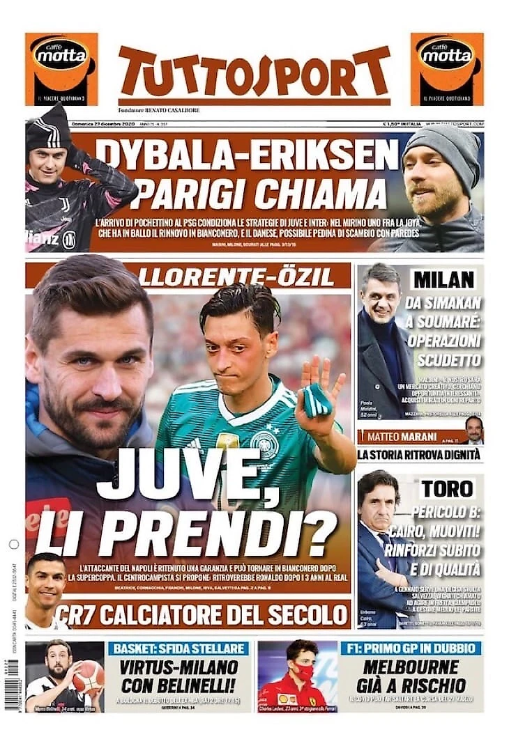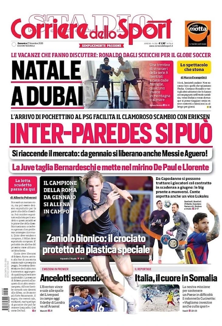 «Интер»-Паредес, это возможно. Заголовки Gazzetta, TuttoSport и Corriere за 27 декабря