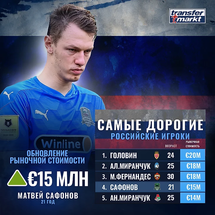 Сегодня "Transfermarkt" в связи с зимней паузой РФПЛ и скорым открытием зимнего трансферного окна, обновил рыночные стоимости игроков. Учитывая грядущий отбор на ЧМ-2022 в Катаре и участие нашей сборной на ЕВРО-2021 ЕВРО 2020, интересно узнать каких игроков Сборной России, или кандидатов в нее выделяют иностранные спортивные аналитики.