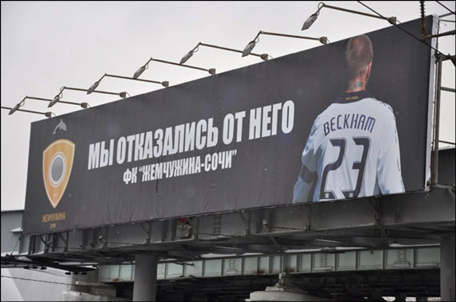 Как только «Жемчужина» вышла в первый дивизион, начались дикие по своей дерзости и стоимости рекламные кампании. На Рублевке и в центре Москвы появились огромные рекламные щиты с Дэвидом Бекхэмом.