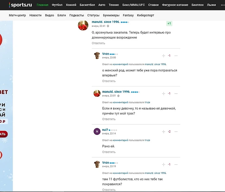 А вот тут как раз и сцепились,то ли в радости то ли в чем-то ином меж собой поклонники Арсенала в режими лайв на спортс ру.