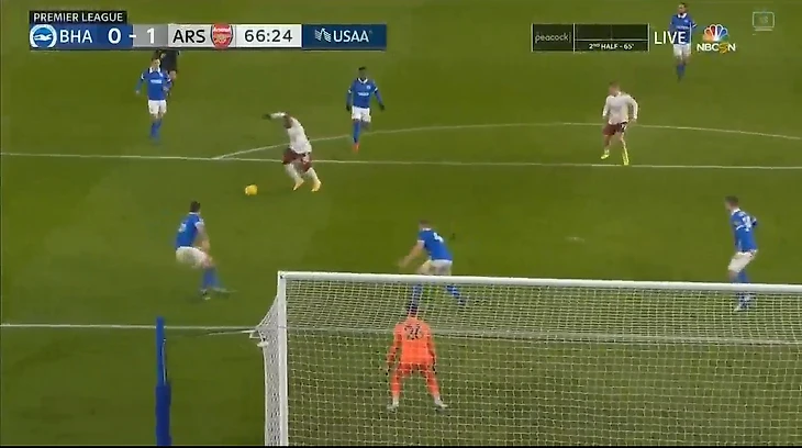И сразу же, мгновенно,как это бывает с великими клубами, после сего выдающегося шанса на успех,вырубили свет надежды в глазах футболистов Брайтона,Сака(фамилия футболиста) ,словно я когда-то во дворе, принял мяч,обманул в центре поля,а чуточку позже,этого же вундеркинда, но уже на скорости, обошел по флангу,далее отдал в пустое пространство,где уже находился только с пылу с жару ,вышедший на поле Ляказет,он же, обработав умопомрачительно мяч и конвертировал данный момент в гол.Фантастика!!!!!