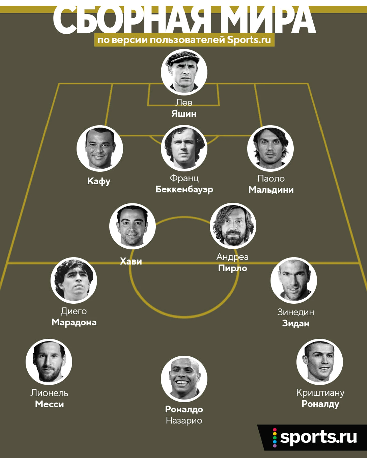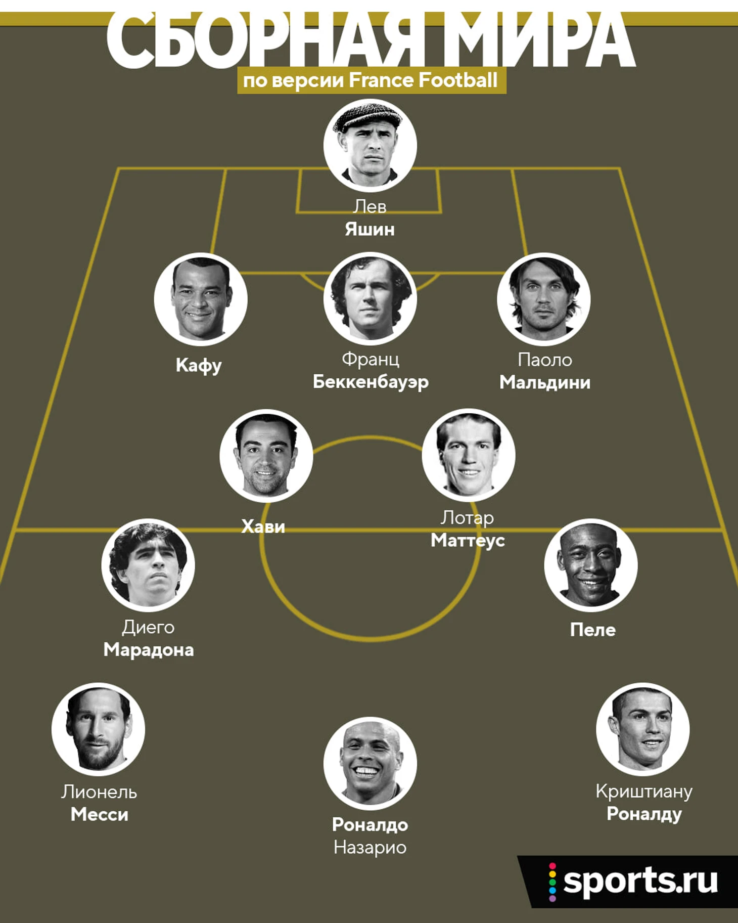 Фух, мы готовы подвести итоги голосования за футбольную сборную всех времен. У France Football вот такой выбор, а мы провели альтернативное голосование.