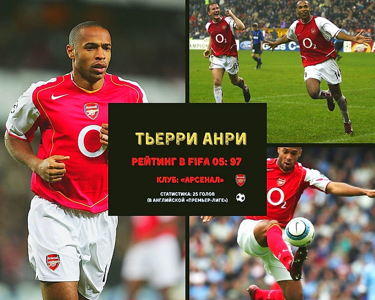 Тьерри Анри – лучший бомбардир в истории «Арсенала», член Зала славы английского футбола. В сезоне 2004/05 27-летний француз во второй раз подряд стал лучшим бомбардиром чемпионата, а через год повторит это достижение и в третий раз. Занял вместе с «Арсеналом» второе место в АПЛ.